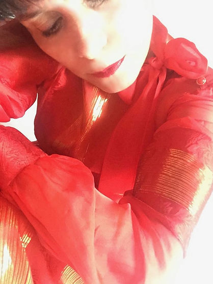 Robe longue, réalisée dans un sari, soie et jacquard.
