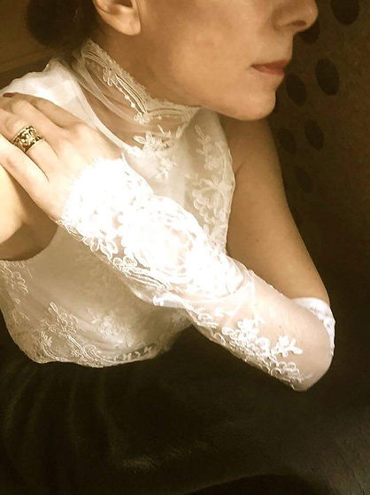 Haut et manchons, réalisés dans une Dentelle de Calais, Ivoire.